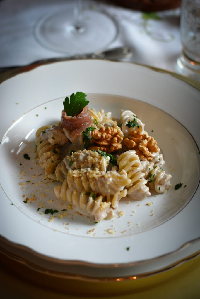 conditi con una crema di Noci e Alici, un primo piatto perfetto per situazioni più eleganti e