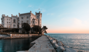 Citato da Giosuè Carducci nell’ode Miramar, questo magnifico castello con le sue “bianche torri” sorse per volontà dell’arciduca Massimiliano d’Asburgo alla metà dell’Ottocento. Affacciato sul golfo di Trieste e situato sul promontorio di Grignano, uno sperone carsico a dirupo sul mare, circondato da un esteso parco all’italiana.