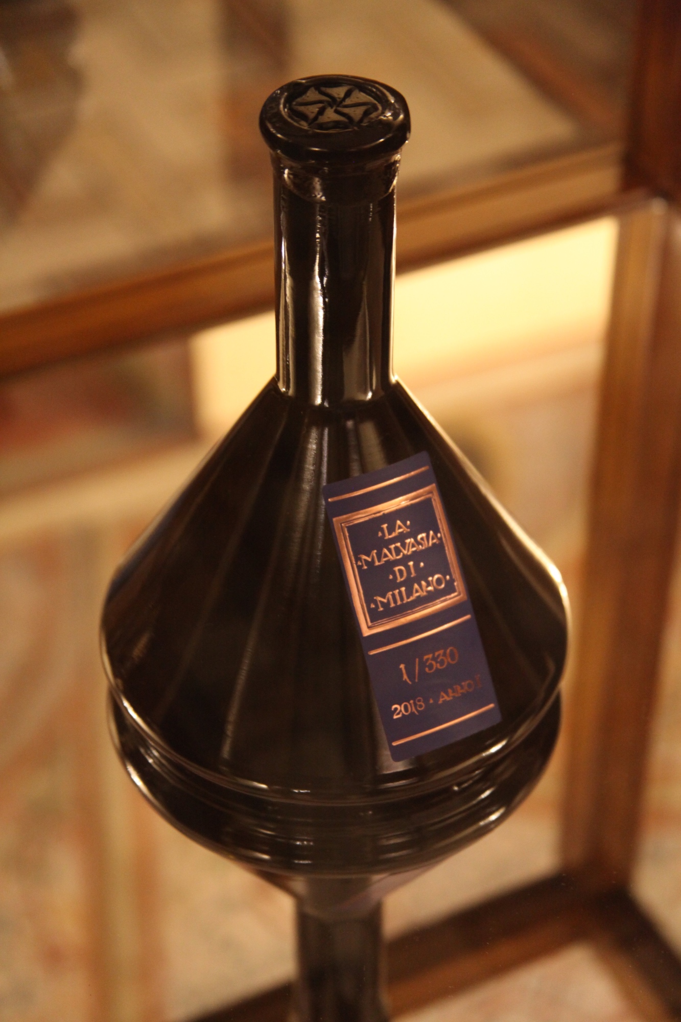 Le sue uve sono state raccolte il 12 Settembre e lasciate fermentare a buccia in una giara in terracotta, successivamente interrata secondo l’antico metodo greco-romano. La Malvasia di Milano, Anno I – è stata imbottigliata in esclusivi 330 Decanter ispirati al disegno di Leonardo da Vinci presente al folio 12.690 del manoscritto Codice Windsor e realizzati da Alberto Alessi nella sua azienda vinicola Cascina Eugenia. I Decanter sono progressivamente numerati e sigillati con timbro di garanzia e cera lacca. La prima delle 330 Opere rimarrà esposta all’interno del museo sotto la splendida volta affrescata da Bernardino Luini, a memoria del secolare legame tra Leonardo e la città di Milano.